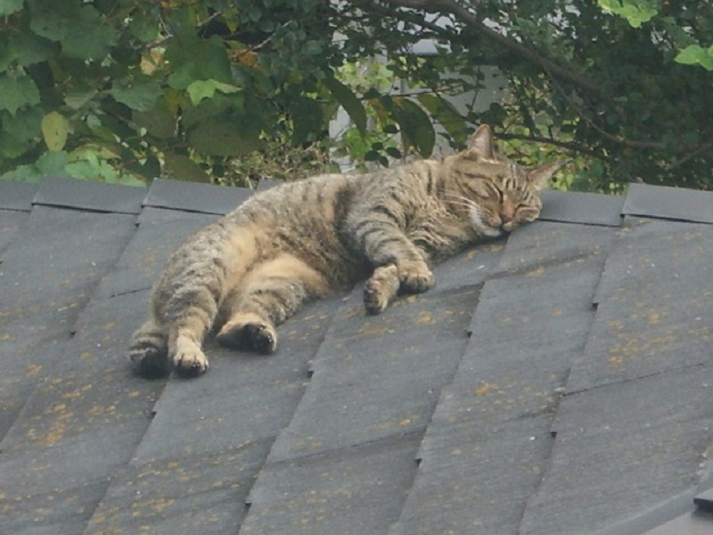 「勝手に看板猫」のシロちゃんも屋根に上がった!